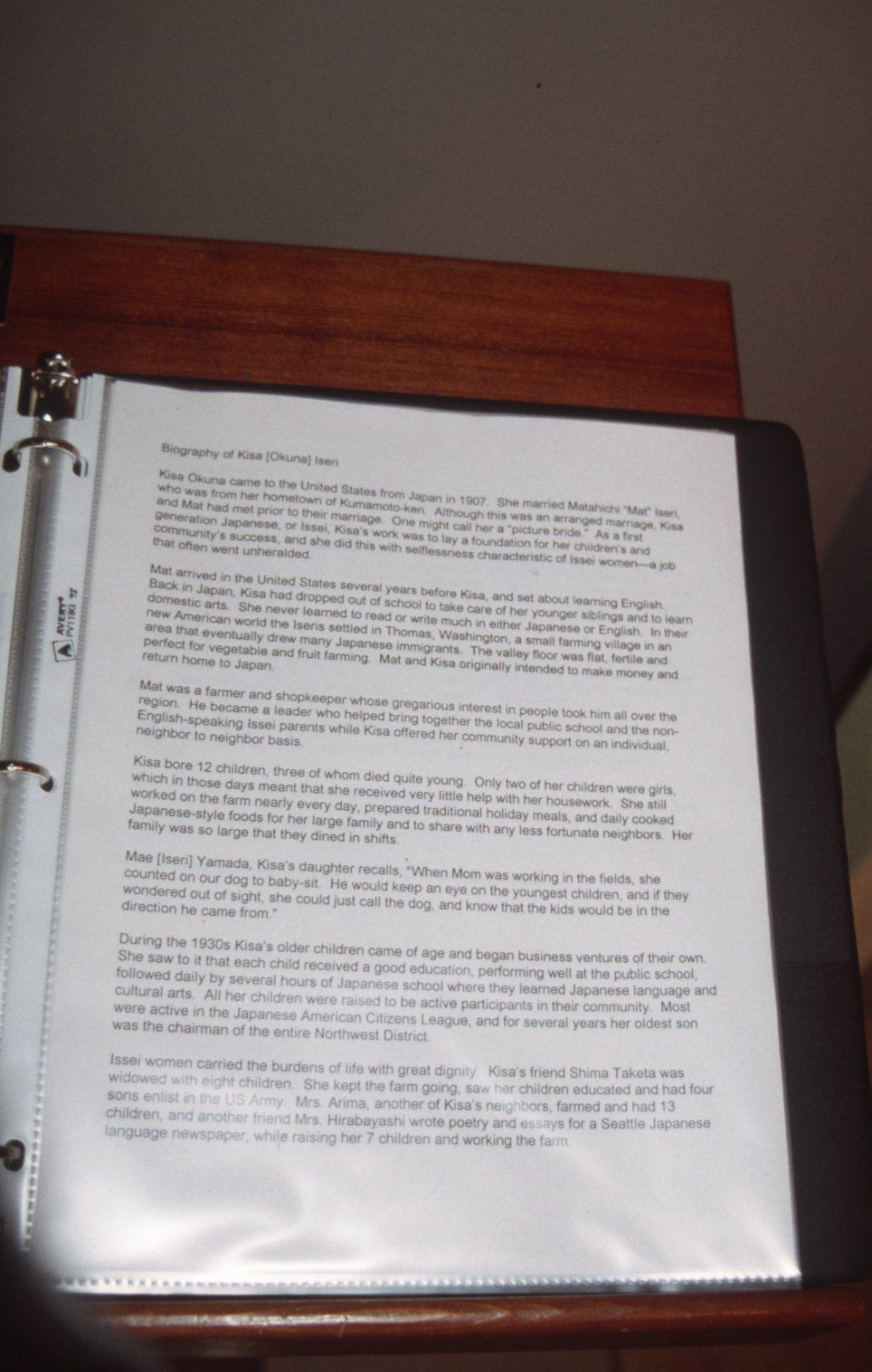 Kisa Iseri, Japanese American Farmhouse Display, August 2000