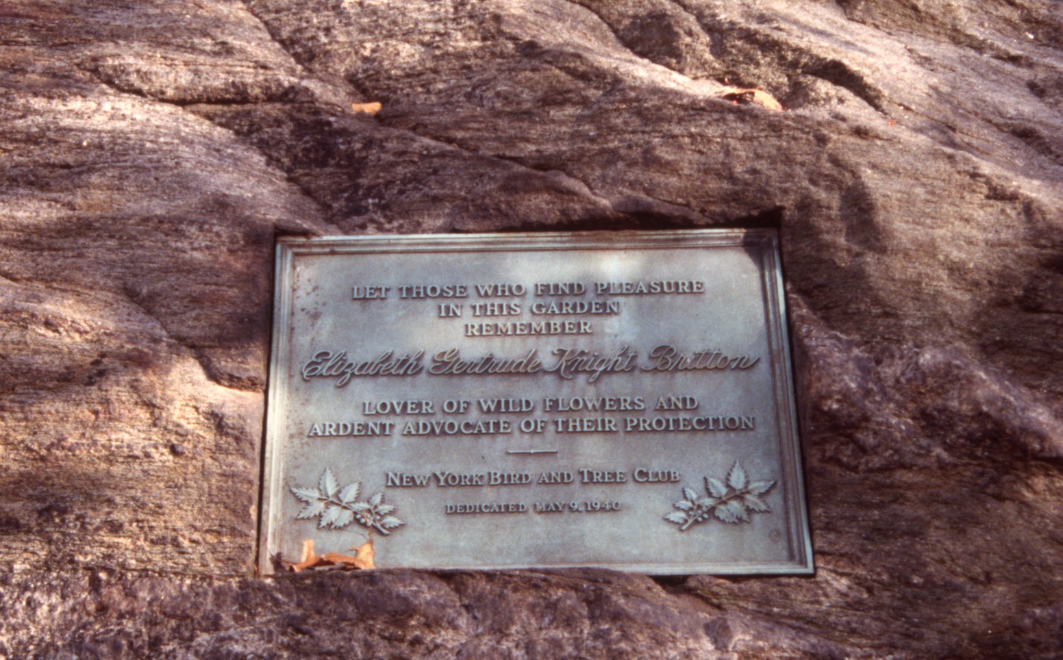 The plaque is located in the New York Botanical Garden, which was co-founded by Britton. - Text