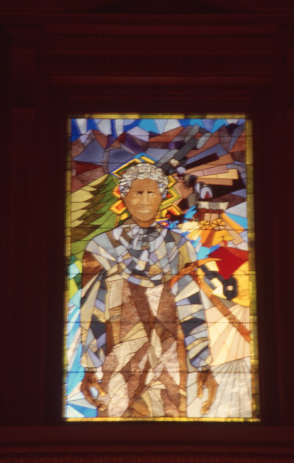 This piece of art is currently located in the Colorado State Capitol Building and was created due to a project sponsored by the Ethnic Minority Council of the Colorado Centennial-Bicentennial Commission. This project aimed to memorialize those of minority ethnic groups who had had an impact on the history of the state through the creation of stained glass windows in the state capitol building. - Date Created